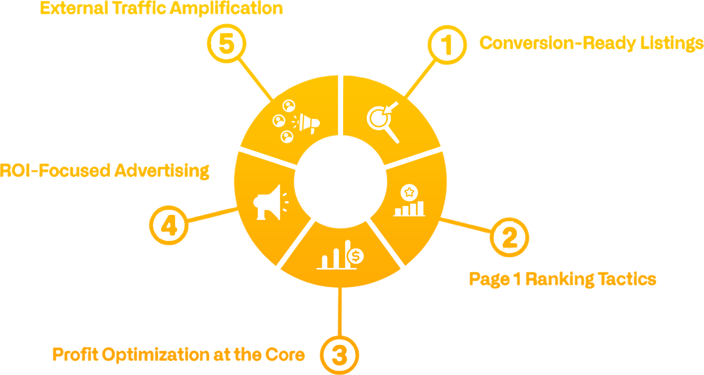 We focus on real business outcomes, not vanity metrics, and work as an extension of your team to make Amazon a true performance engine.